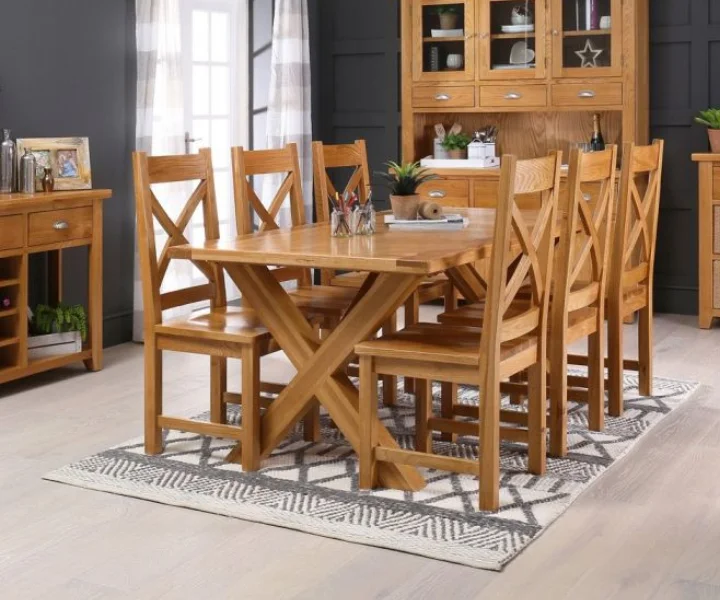 Solid Teak X Frame Dining Table + 6 Cross Back Chairs