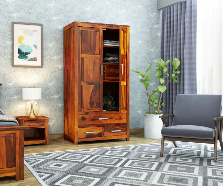 2 Door Solid Sheesham Wood Wardrobe