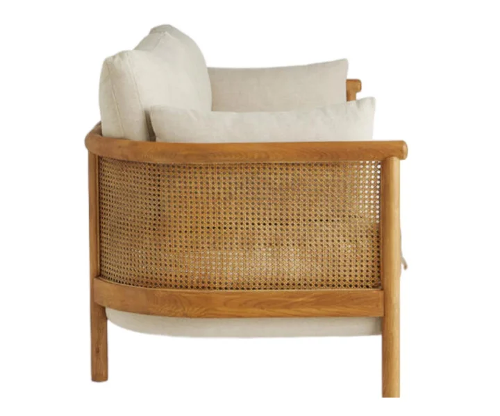 Bard 3 Seater Solid Wood & Rattan Sofa
