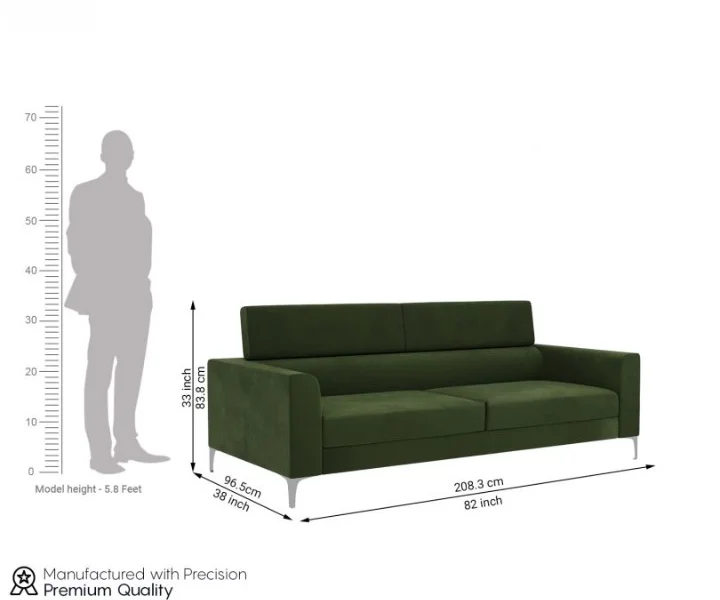 Material & Color: Made of premium-quality material, this 3-seater fabric sofa is sturdy in nature and offers long-lasting durability. The four colour options available in this velvet fabric 3-seater unit are Chestnut Brown, Graphite Grey, Indigo Blue, and Dark Olive Green to match diverse decor aesthetics.
