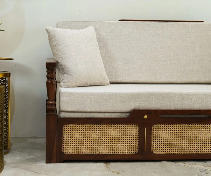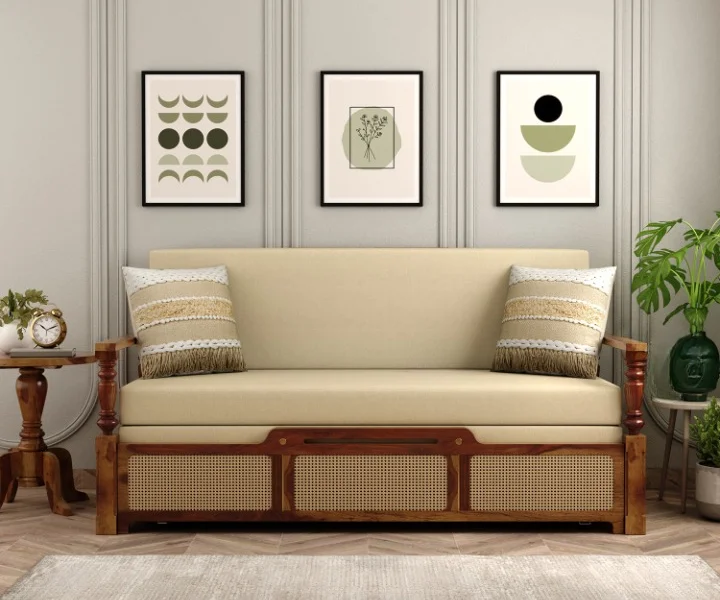 About Material & Finish : Made of high-quality Sheesham wood, this sofa cum bed is sturdy in nature and offers lasting durability. The Ayaana Sofa cum Bed with Cane is available in varied finish options for you to choose from.