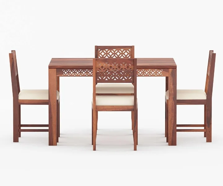 The Cambrey Compact 4 Seater Dining Set from is a perfect addition to any dining space. This dining set is designed to comfortably accommodate four people, featuring a rectangular table with a smooth tabletop and matching chairs. The set also includes a sturdy which can be used as additional seating or for extra space. The entire set is made of high-quality Sheesham wood, ensuring durability and longevity. The finish option available in this adds a touch of elegance and sophistication to the set, making it perfect for modern or traditional interiors. Upgrade your dining experience with this stylish and practical dining set from Queen Wood.