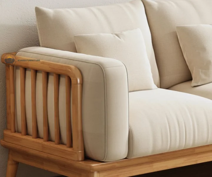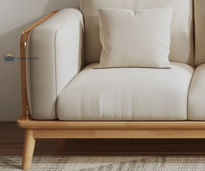 Open-Frame Wooden Base: Exposed solid wood arms and legs give an airy, light feel.