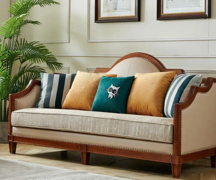 Anchor your living room in sophisticated style and impeccable comfort with a single addition. Perfectly balancing wood accents with fabric upholstery, this impressive sofa offers your home a charming mid-century modern upgrade. This piece offers a beautiful curved design that is finished with nice stitching in the backrest. Completed with iconic splayed legs and lovely rolled accent pillows, this refined sofa will make any interior space into a stunning masterpiece.