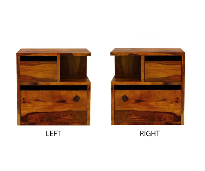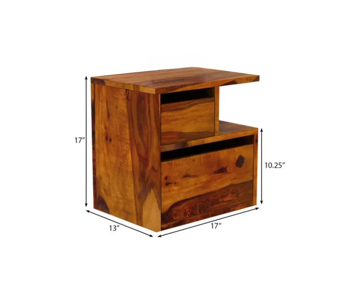 Bedside table shaped design with alternate rectangular frames in the center makes it a distinct furniture structure with crafted from Sheesham wood.