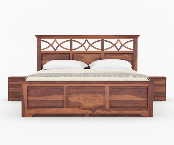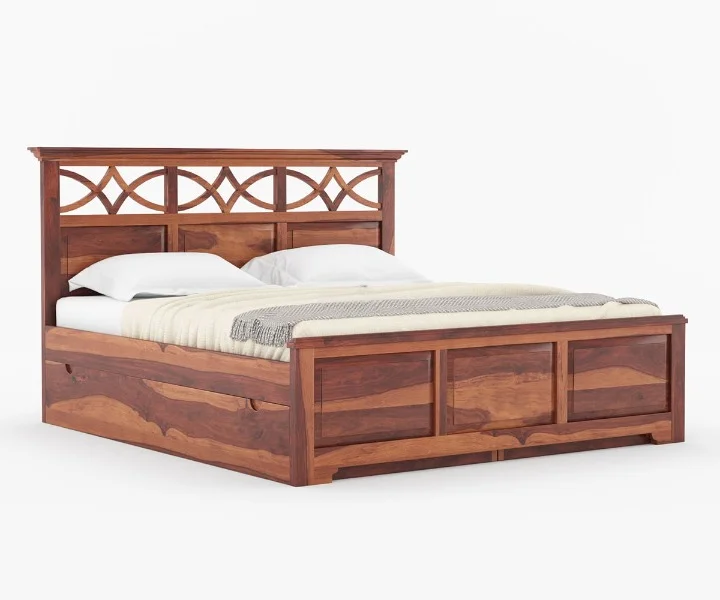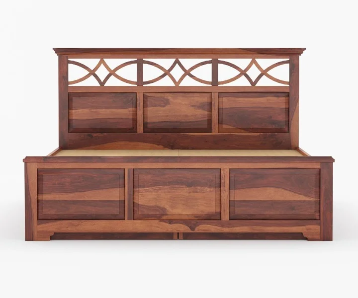 Wood Grain Patterns: The natural wood grain of Sheesham wood is prominently displayed, adding to the bed’s aesthetic appeal with its rich, warm tones and unique patterns.
