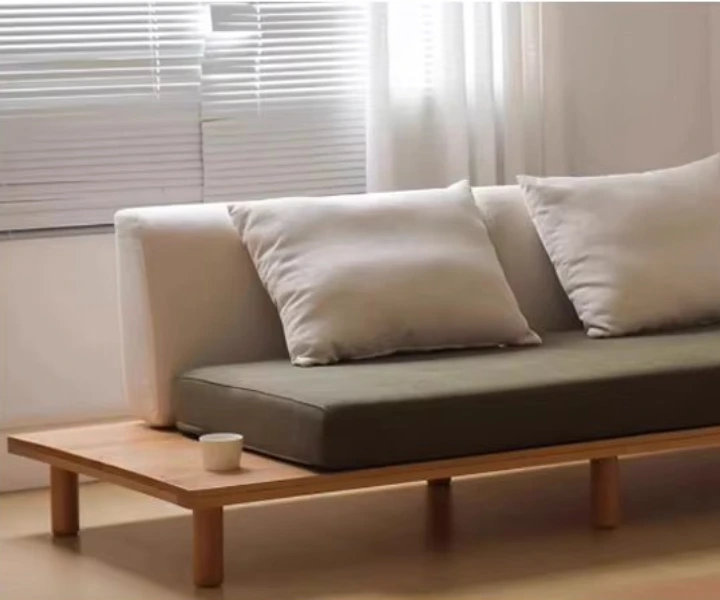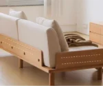 This 3 Seater solid wood sofa with storage underneath is a stylish and functional piece of furniture that combines the minimalist aesthetics of European Luxury design with the warmth and durability of solid wood construction.