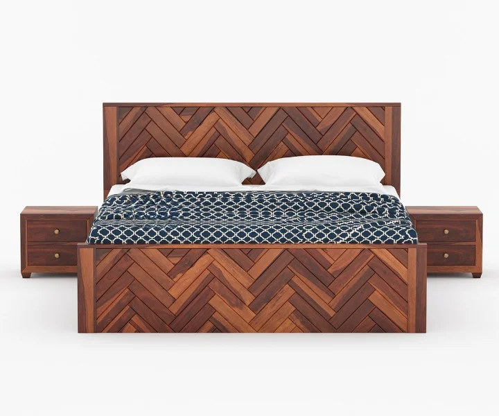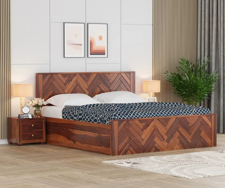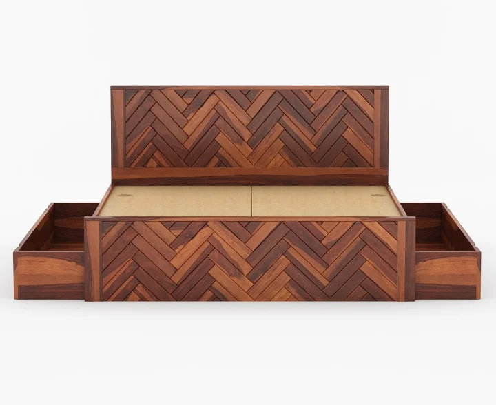 Norma Sheesham Wood King-Queen Size Bed with Storage