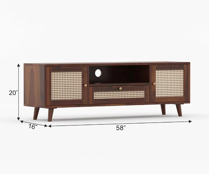 Be the first to review “Peter Sheesham Wood Cane TV Cabinet”