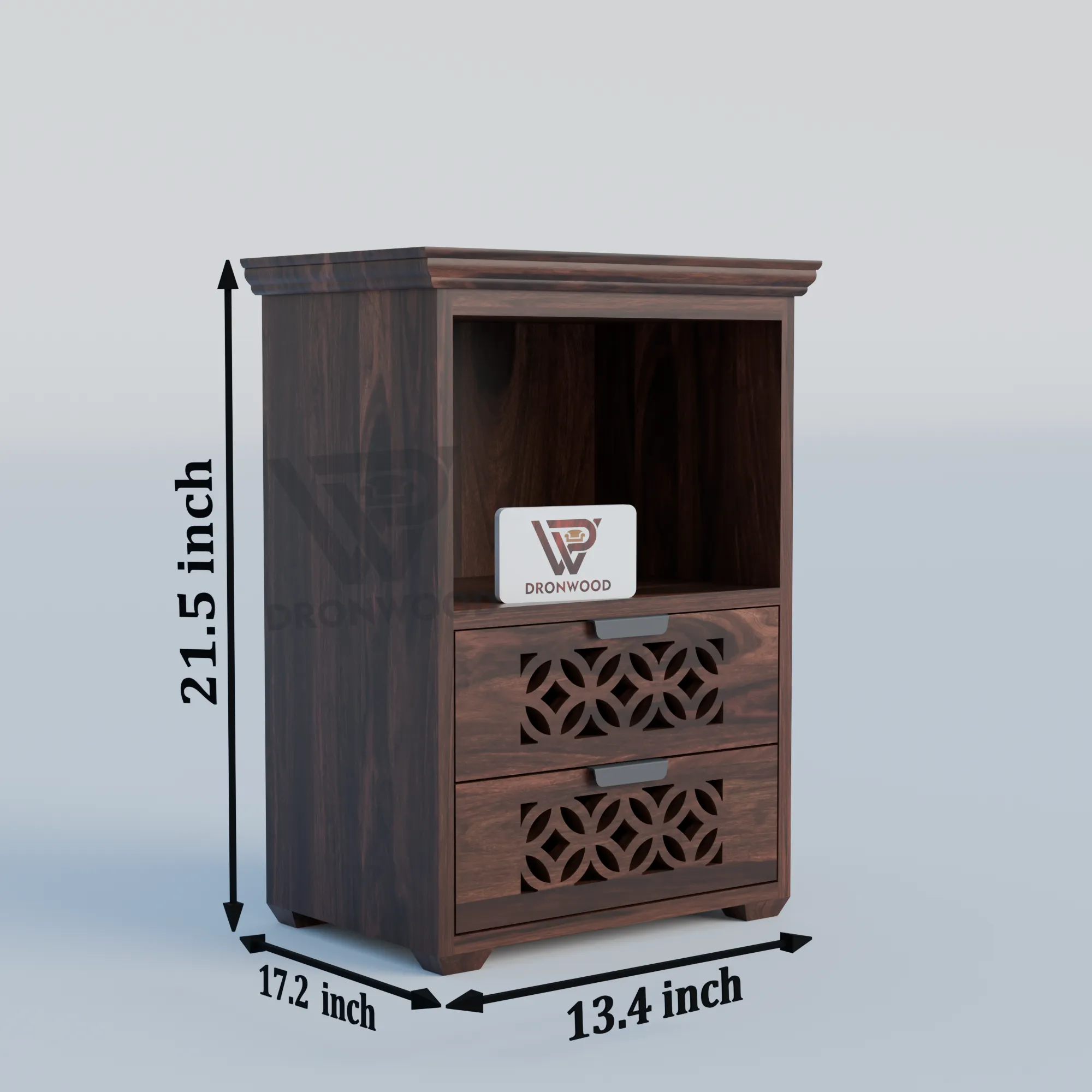 Premium Sheesham Wood CNC Bedside Table | Carved 2-Drawer Nightstand | Walnut Finish
