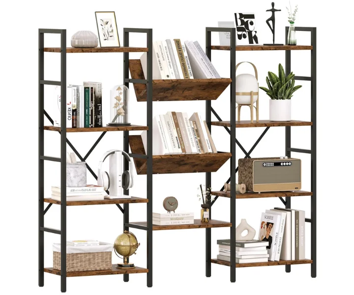 Retro & Industrial Style: The retro industrial style with natural wood texture combines a primitive and industrial aesthetic. With its sleek and modern design, this open bookshelf seamlessly blends into any room decor, whether it’s your living room, study, or office. Its versatility makes it suitable for various settings.