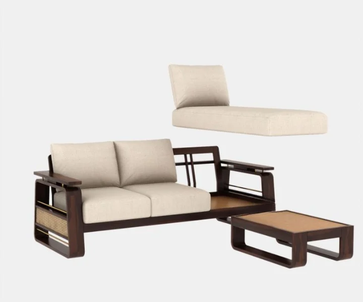 Introducing our Vedic wooden L shape sofa cane and brass work seamlessly blends contemporary and traditional design elements, making it a versatile choice for various interior styles. The intricate cane work on the sides, along the luxurious hints of brass work, reflect a classic Indian design aesthetic, adding a touch of cultural charm to your home. The plush cushions are not only comfortable but also removable for easy maintenance. The unique design of this sofa makes it a focal point in your living room, while the curved armrests and sturdy legs enhance both style and stability.