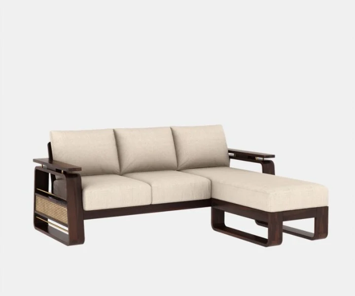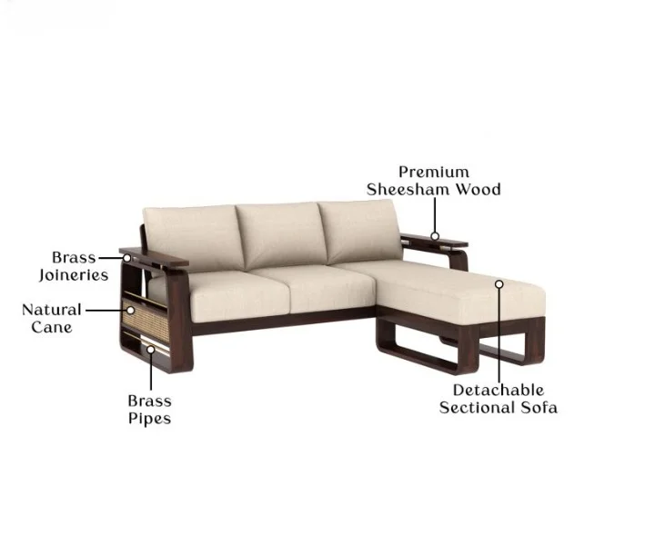 Made of high-quality sheesham wood, this wooden sofa with cane and brass work is sturdy in nature and offers lasting durability. The Vedic L shape wooden sofa with cane and brass work is available in varied finish options for you to choose from.